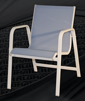 M-750 - Maui Line Sling Dining Chair Stackable Tension Spring Technology Through bolt procedure Available in a variety of Slings and finishes Ships fully assembled 1 ¼” Round Tubing Specifications: W = 23" D = 31 H = 34" SH = 17 ½” AH = 25"